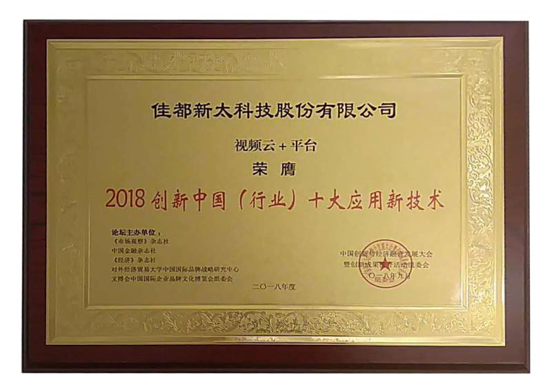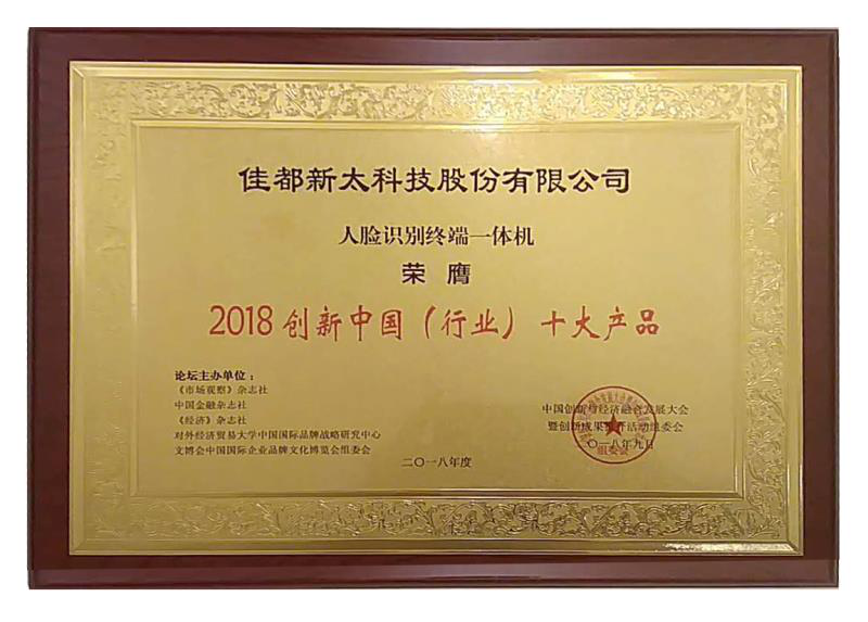 9月28日至29日,2018中国创新与经济融合发展大会暨(第二届)创新成果推介活动在北京举行。佳都科技斩获双料奖项, 视频云+大数据应用平台获2018创新中国(行业)十大应用新技术,脸识别终端一体机获2018创新中国(行业)十大产品。