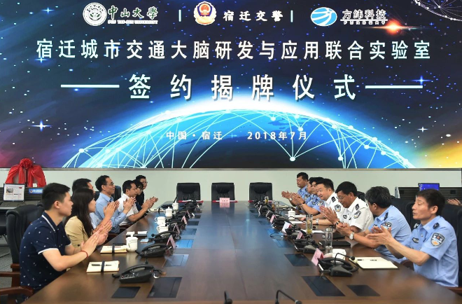7月17日上午,佳都科技控股公司方纬科技与宿迁交警、中山大学广东省智能交通系统重点实验室共同签署合作协议,共建宿迁城市交通大脑研发与应用联合实验室。签约暨联合实验室揭牌仪式在宿迁市公安局指挥中心隆重举行,标志着佳都科技与方纬科技研发的城市交通大脑正式走进江淮生态经济区。